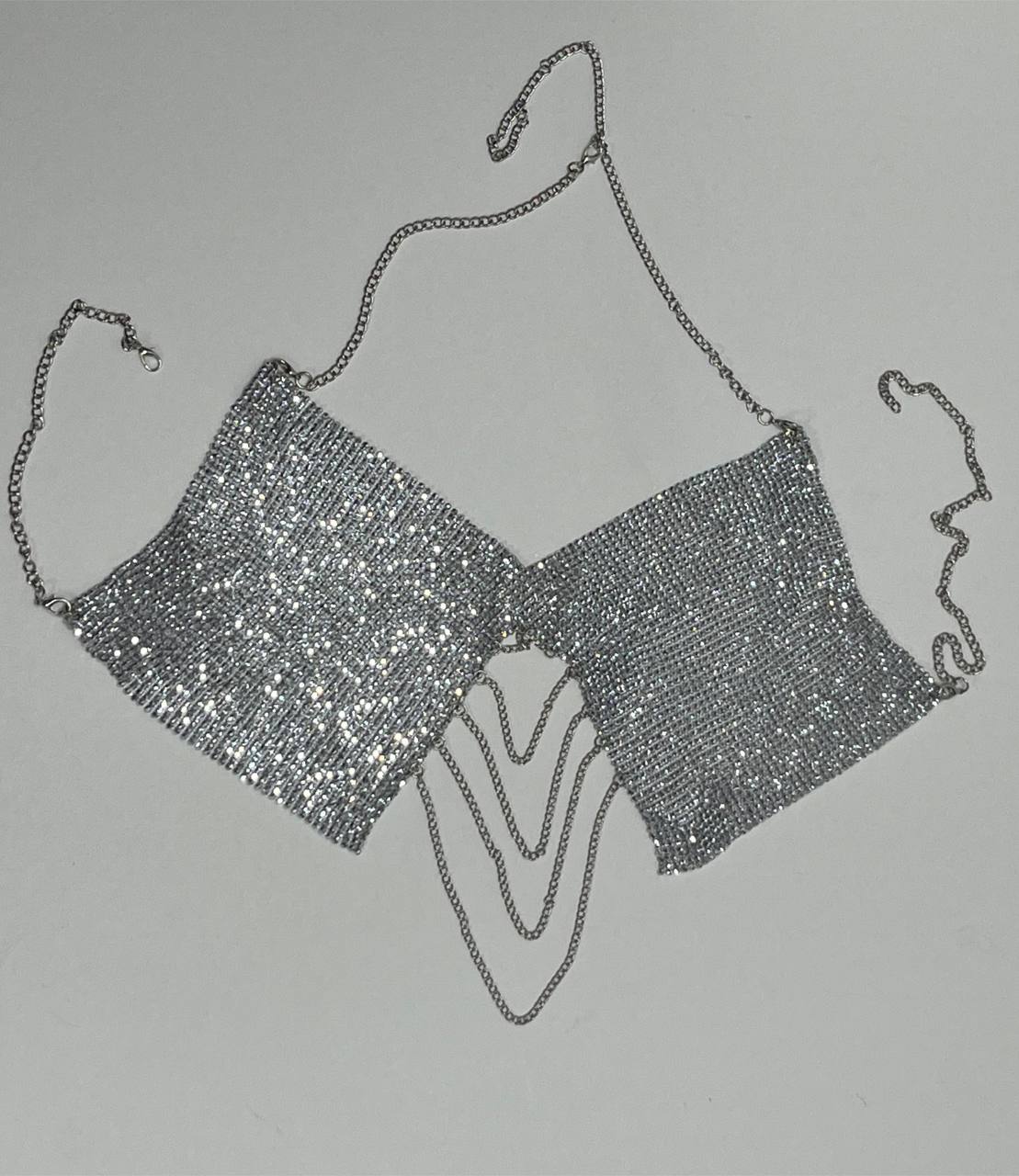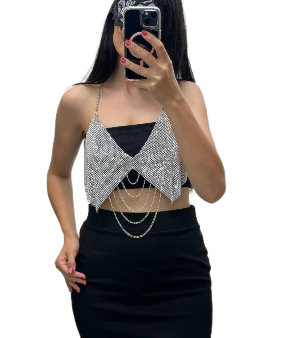 - اندازه کل بند زنجیری پشت تاپ کریستالی: 56 سانتی متر